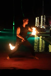 Delight in one in-villa fire show during your stay, subject to availability — an unforgettable spectacle beneath the island sky.